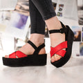 V�� prezent��m modelul de sandale�� dam�� cu platforma Cora Red. Modelul este disponibil ��n culoarea foarte iubita de fashioniste- rosu. Talpa este neagr��, la fel ca ��i cureaua care fixeaz�� sandalele ��n zona gleznei. Combina��ia��reusita��dintre��rosu ��i negru face ca designul sandalelor cu platform�� Cora Red s�� fie deosebit de atractiv ��i relevant pentru sezonul de prim��var�� ��i var��. Sunt fabricate din piele ecologic��, iar ��n��l��imea platformei ��n fa���� este de 5 cm, iar ��n spate - ��n zona��calcaiului��este de 7 cm. Sandalele dama��cu��platforma Cora��Red sunt potrivite pentru femei din diferite��categorii��de v��rst��. Sunt o op��iune excelent�� pentru o plimbare, pentru locul de munc�� ��i pentru o varietate de evenimente de zi cu zi. Se potrivesc perfect cu blugi, pantaloni, fuste sau rochii ��n galben, alb, negru, albastru, roz. Sandalele cu platform�� Cora��Red sunt un plus minunat pentru garderoba unei femei.